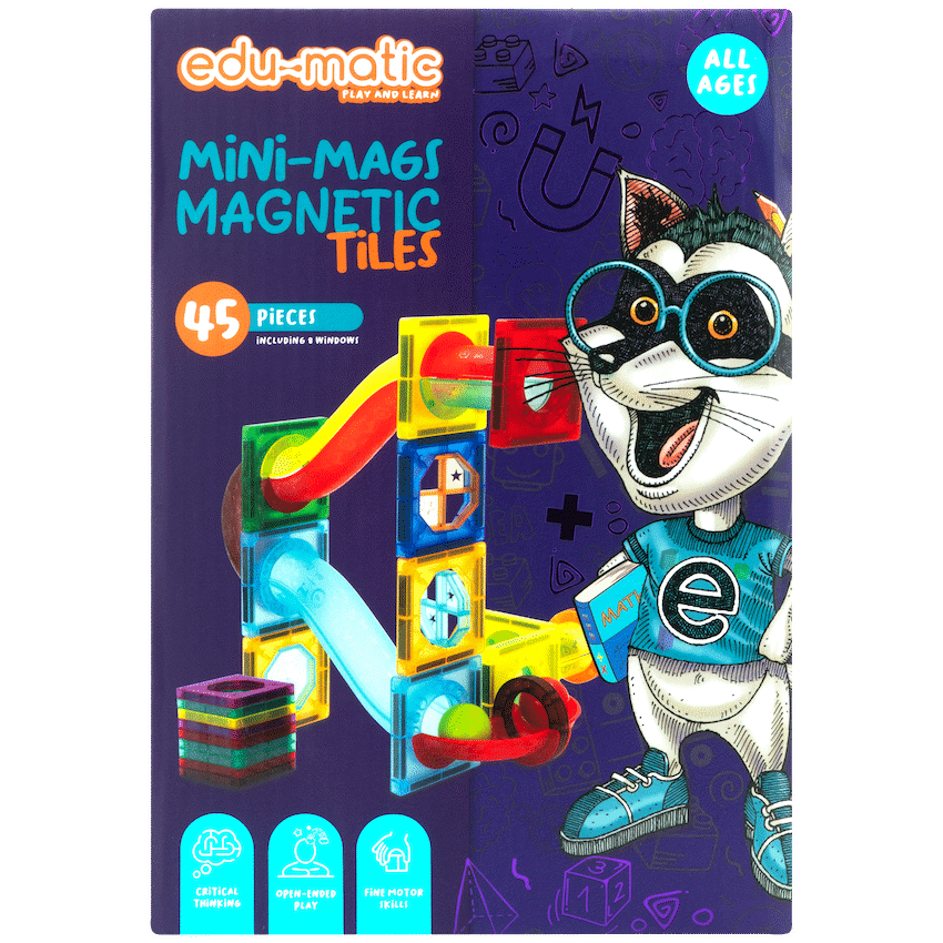 Introducing the Edu-Matic Magnetic Tiles Set, a captivating educational toy that will ignite your child’s creativity and cognitive development. With its 45-piece set, this magnetic tile set provides endless possibilities for exploration and learning. Let’s delve into the exceptional features that make the Edu-Matic Magnetic Tiles Set a must-have for young learners:45 Piece: The set includes 45 magnetic tiles, offering a substantial variety of shapes and colors to engage children in imaginative play.Bright, beautiful & highly luminescent: Each magnetic tile boasts vibrant and eye-catching colors, making them visually appealing to children. The tiles’ luminosity adds an extra element of excitement and captivation to their playtime.Made from the highest quality materials: Edu-Matic Magnetic Tiles are crafted from premium materials, ensuring durability and longevity. The sturdy construction guarantees that these tiles will withstand the test of time, enduring even the most enthusiastic play sessions.Excellent for hand-eye coordination: As children manipulate and connect the magnetic tiles, they enhance their hand-eye coordination skills. The tactile nature of the tiles encourages children to explore and experiment, improving their motor skills and dexterity.3D shape skills: The Edu-Matic Magnetic Tiles Set facilitates the development of children’s understanding of three-dimensional shapes. By stacking and connecting the tiles, kids learn how to create structures, fostering spatial awareness and problem-solving abilities.Shape recognition: The set includes tiles of different shapes, such as squares, triangles, and rectangles. Through play, children become familiar with these shapes and develop their shape recognition skills, laying a foundation for future mathematical concepts.Logical thinking: Building with magnetic tiles requires planning, sequencing, and logical thinking. As children experiment with different arrangements and configurations, they sharpen their critical thinking skills and enhance their ability to solve problems creatively.What’s in the box1 x Edu-Matic Magnetic Tiles Building Set – 45 Piece