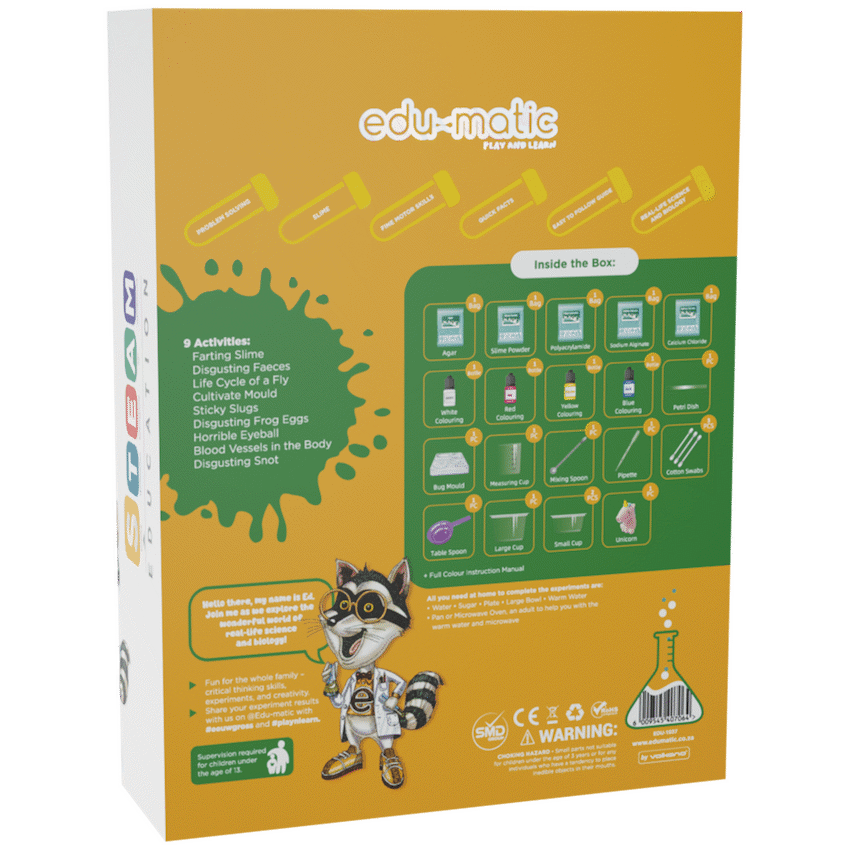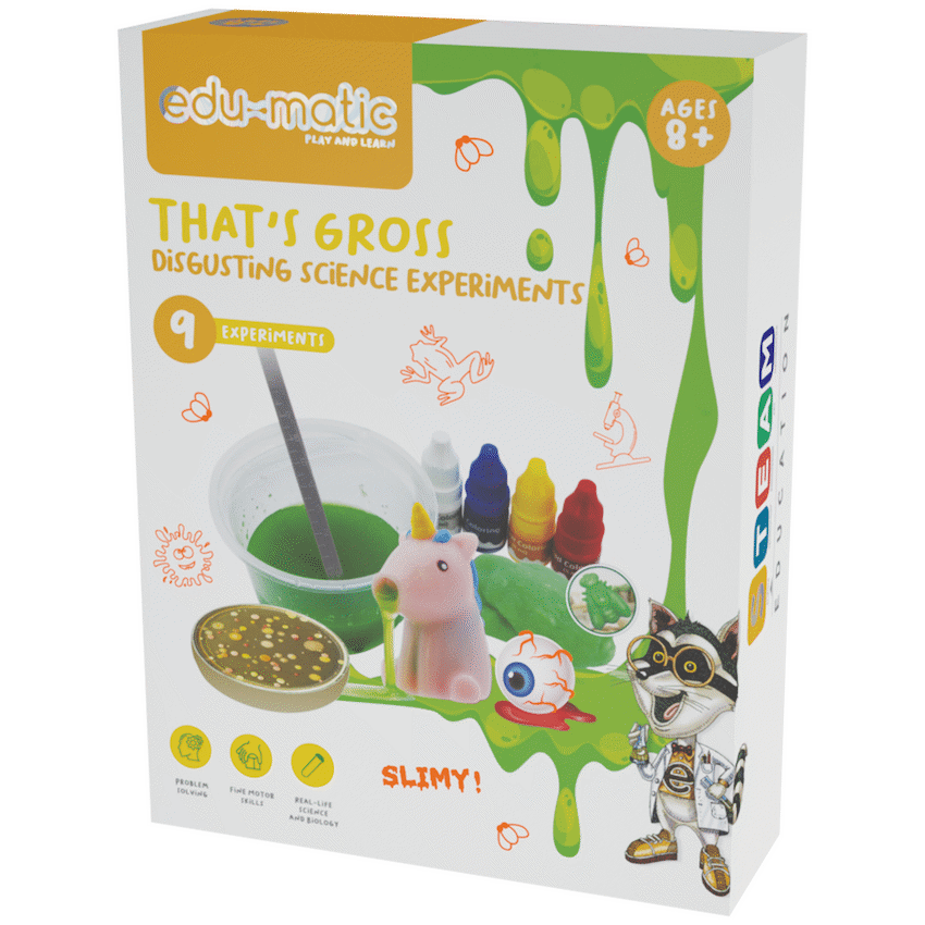 The That’s Gross – Disgusting Experiments Kit is a fun and fascinating way to spark children’s curiosity through messy, hands-on science. With 9 different experiments to explore, kids can enjoy creating all things gooey, slimy, and delightfully gross. From making slime and growing mould to creating moulds that demonstrate the lifecycle of a fly, this kit provides hours of entertaining and educational play. Designed to engage young minds, it encourages curiosity, scientific thinking, and sensory exploration while allowing kids to enjoy the thrill of experimenting. The kit includes a full-colour instruction manual with clear, step-by-step guidance, making each activity easy to follow and understand. Perfect for children who love messy play and discovering how things work, the That’s Gross Kit turns learning into an exciting adventure full of fun surprises.
