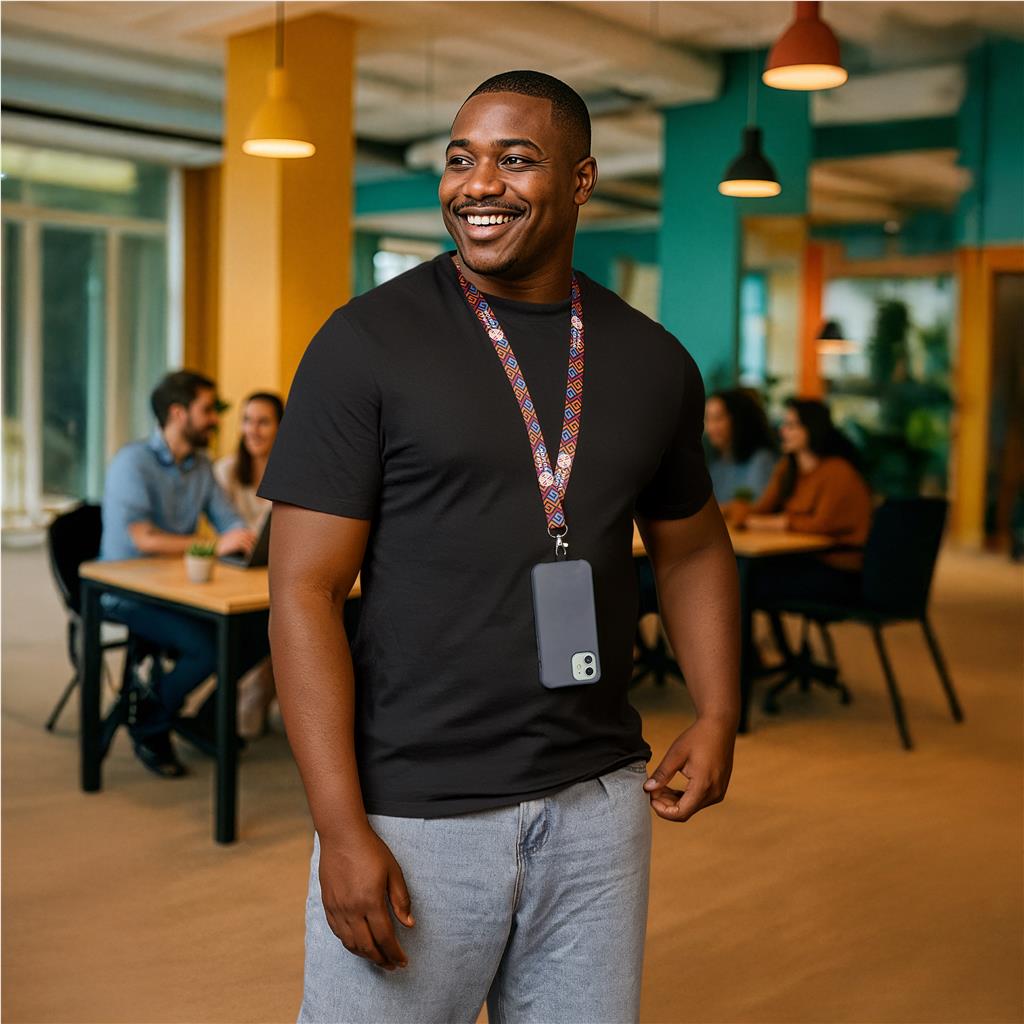 - The lanyard is printed double-sided