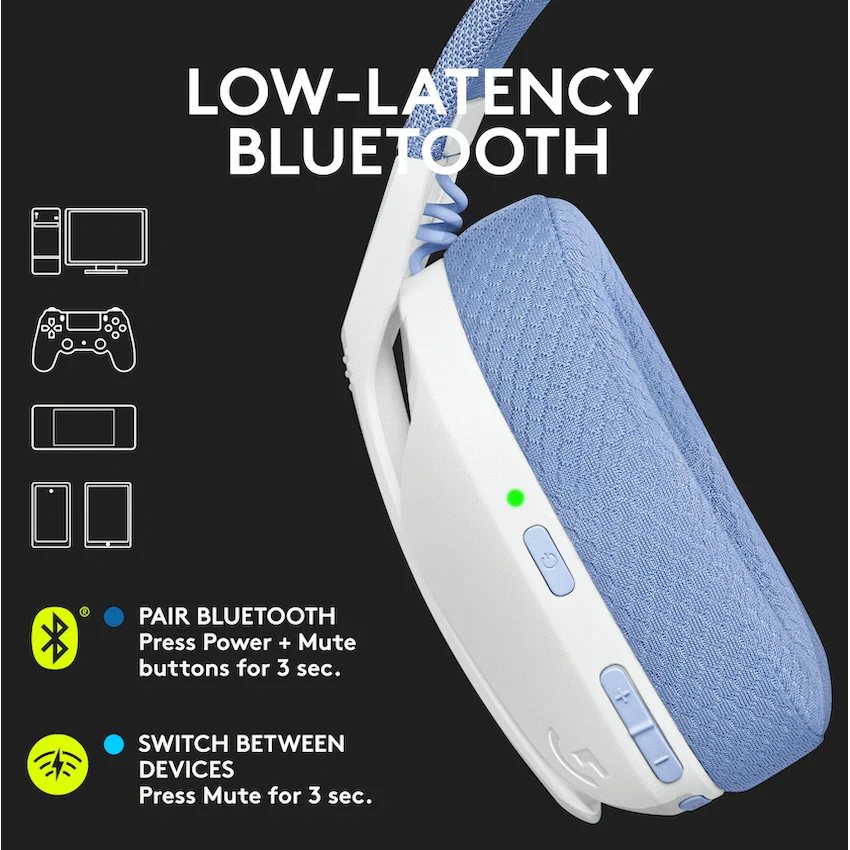 Enjoy lightweight comfort and immersive audio with the Logitech(R) G435 LIGHTSPEED Wireless Gaming Headset, designed for gamers who want freedom, style, and performance. Weighing just 165 grams, this ultra-light headset is comfortable for long gaming sessions without compromising on sound quality. Equipped with PRO-G 40mm drivers, the G435 delivers clear highs, rich mids, and punchy bass for precise in-game audio and music playback. The flip-to-mute boom microphone ensures crystal-clear voice communication, while DTS Headphone:X 2.0 provides spatial sound that enhances situational awareness in competitive gameplay. Featuring dual connectivity, the headset works with LIGHTSPEED wireless for low-latency PC gaming or Bluetooth(R) for mobile devices, laptops, and consoles, offering versatile compatibility across platforms. Its eco-friendly design incorporates 45% recycled materials, combining sustainability with premium performance.