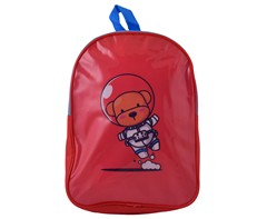 Nursery school backpack for preschoolers, with a cute puppy spaceman picture on the front. With 1 main zippered compartment and adjustable shoulder strap.