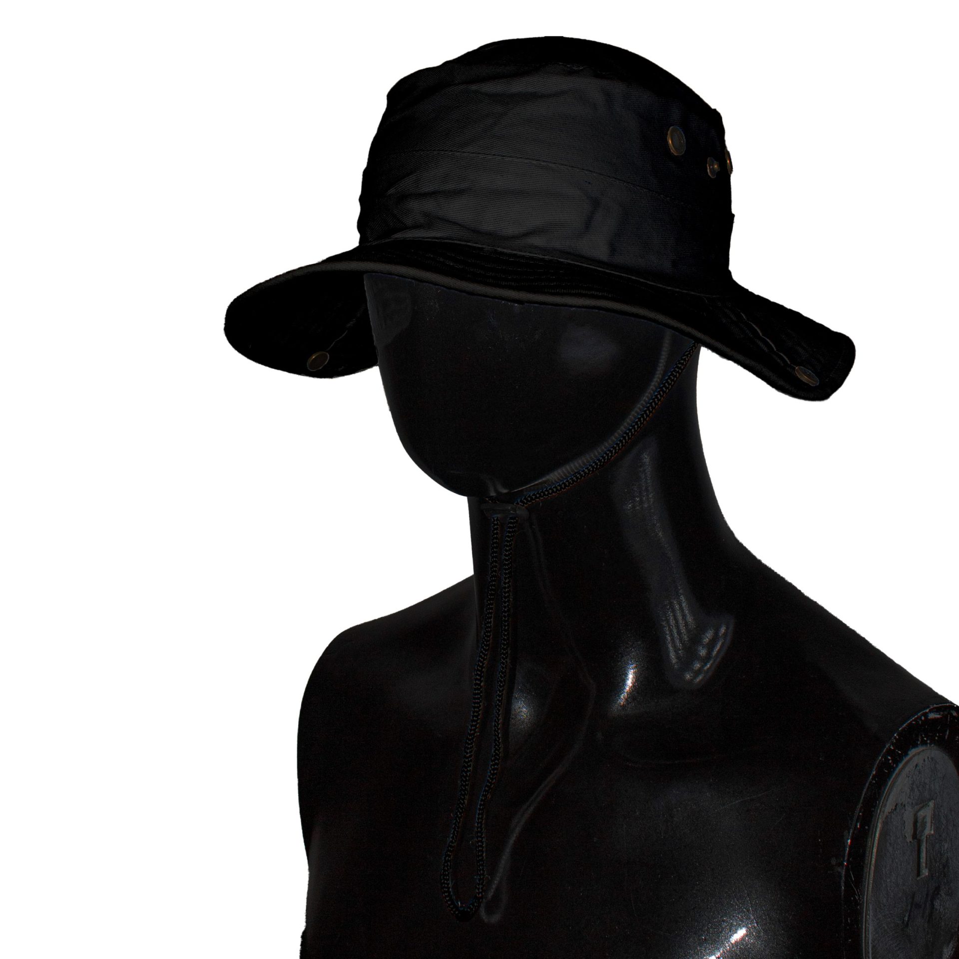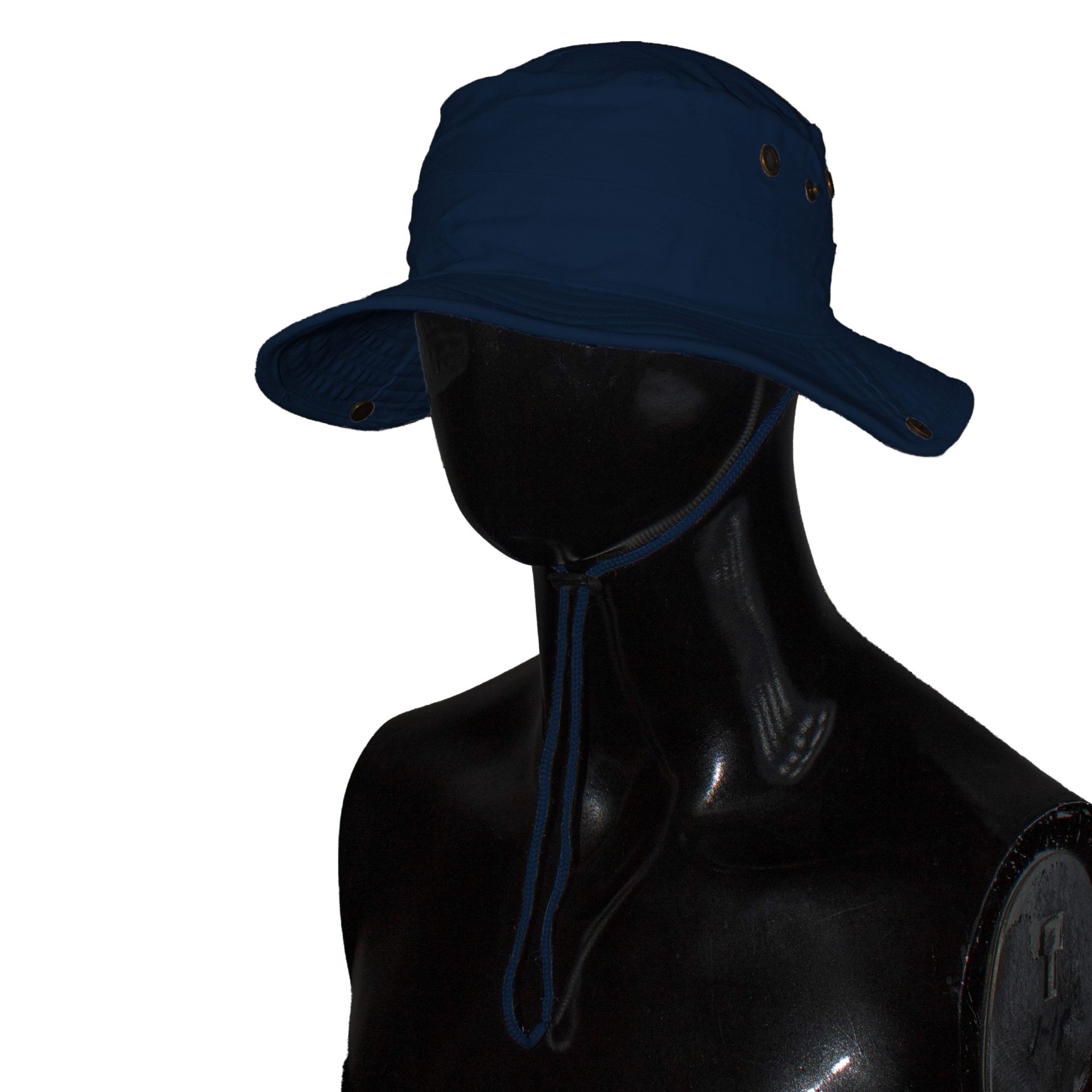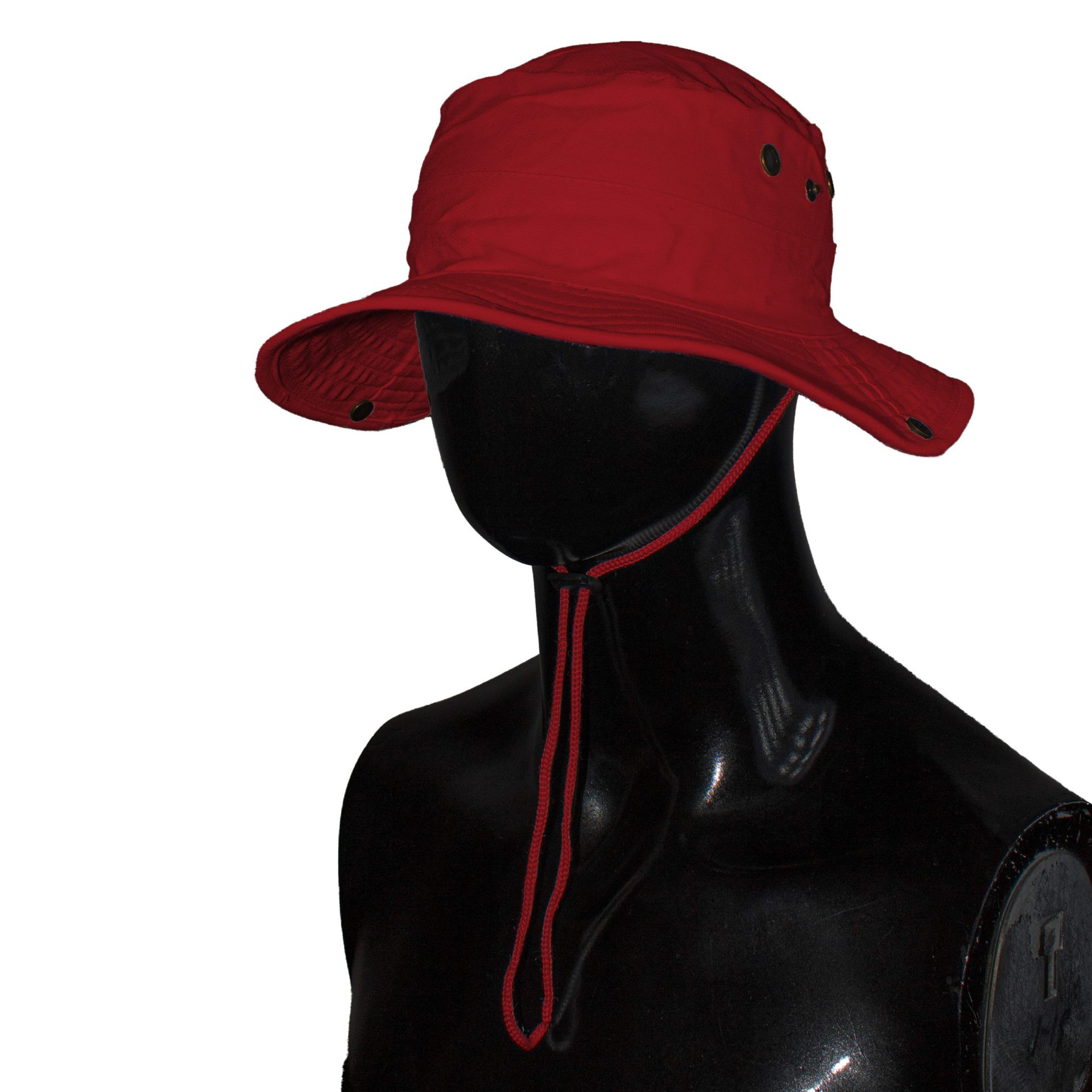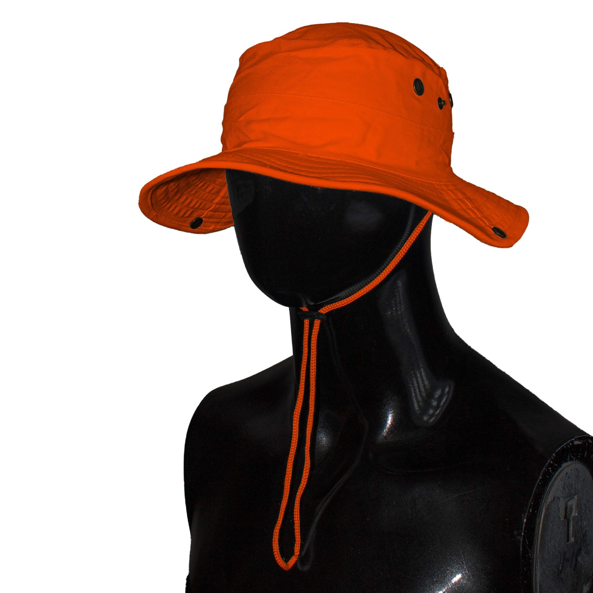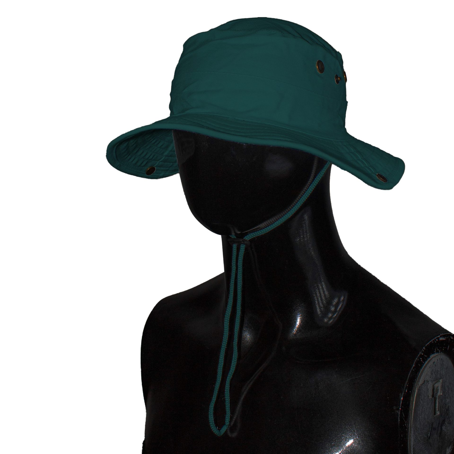 Durable heavy brushed cotton bush hat featuring metal mesh eyelets for ventilation, a practical clip-up brim, and a looped band with an adjustable cord and side toggle for a secure fit. Ideal for outdoor activities, hiking, or rugged everyday wear.
