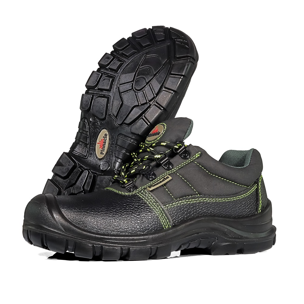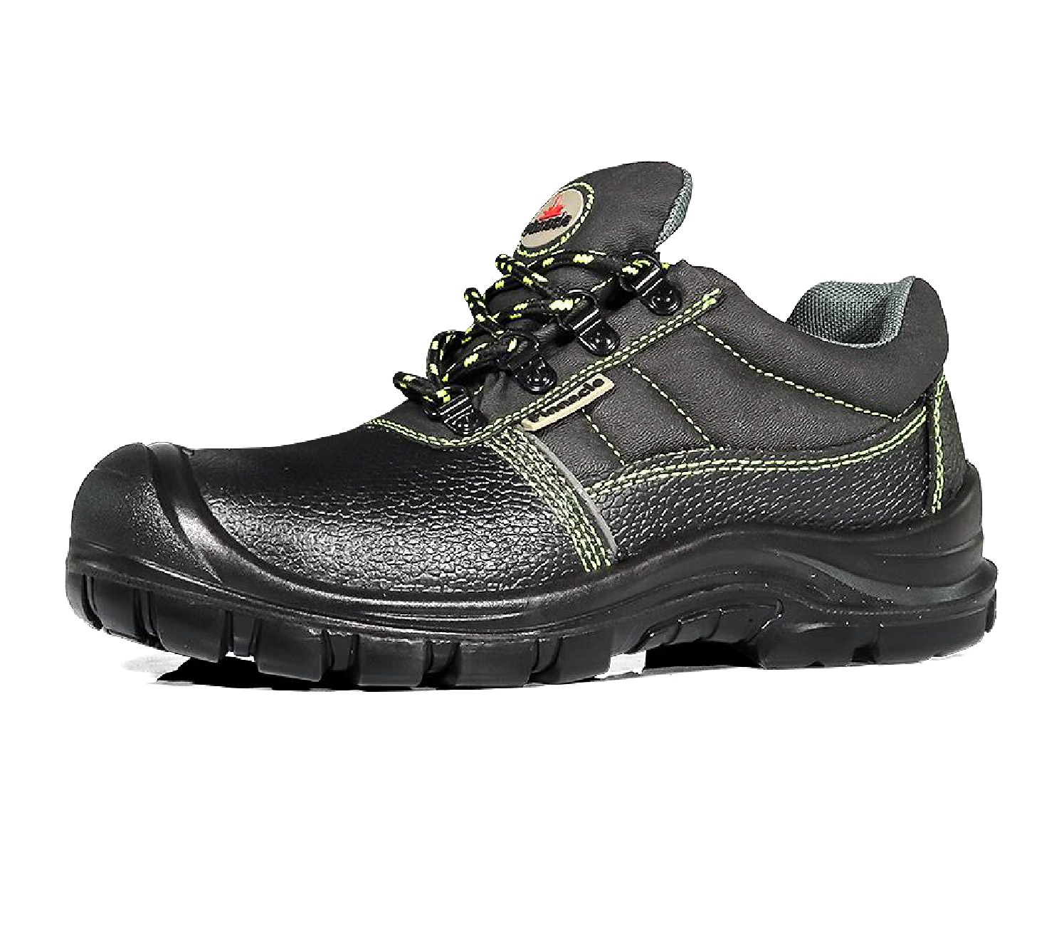 Rokolo Safety Shoes | Material: Embossed Split Cow Leather | Resistance: Oil & Slip Resistance, Toe Impact Resistance (200J), Penetration Resistance, Heat Resistance <90 °C | Features: Shock Absorbing Heel, Removable Insock, Breathable Insole, Lime Stitching, Steel Toe Cap