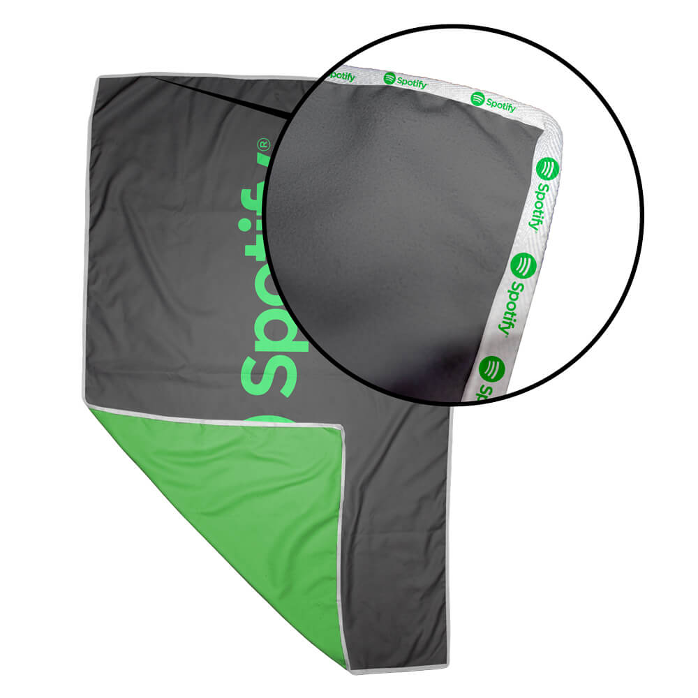 Double-sided digitally printed large beach towel featuring vibrant full-coverage prints and personalised branded Petersham webbing. Includes an elastic band for easy rolling and compact storage. Lightweight, highly absorbent, and quick drying, making it perfect for beach outings, poolside relaxation, and promotional giveaways.