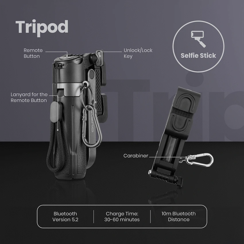 4-in-1 multifunctional phone grip, selfie stick, Bluetooth camera remote, including tripod.