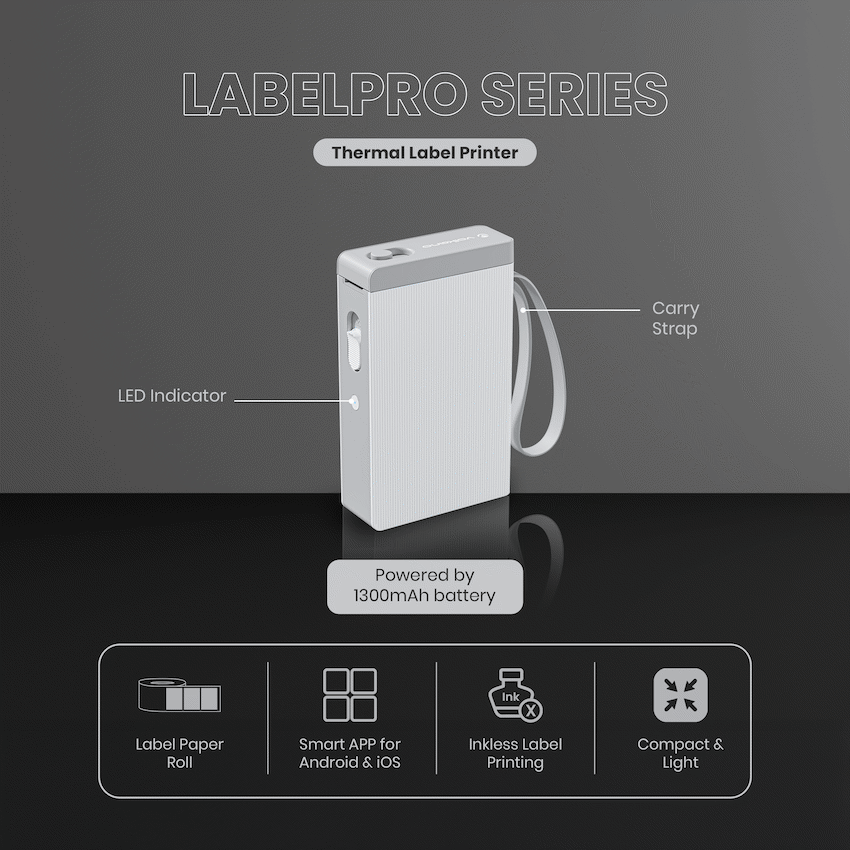 Print anywhere with the Volkano LabelPro Series Thermal Label Printer in sleek white. Designed for mobility and convenience, this compact printer features a 1300mAh rechargeable battery, Bluetooth connectivity via app, and fast 20mm/s thermal printing-perfect for on-the-go labelling needs. With support for gap and continuous paper, a manual cutter, and a starter roll included, you’re ready to print right out of the box.